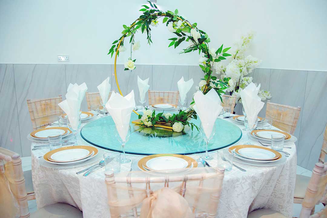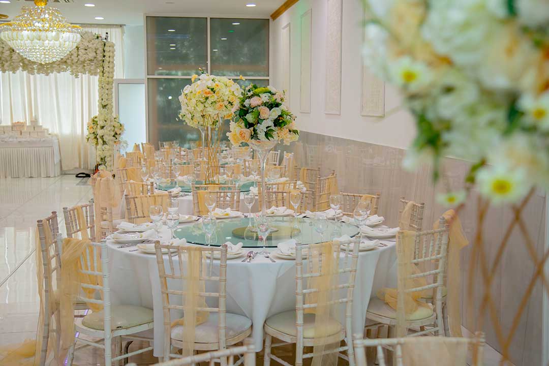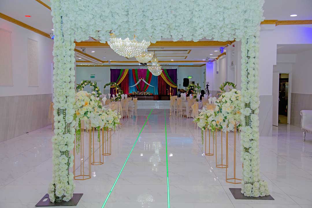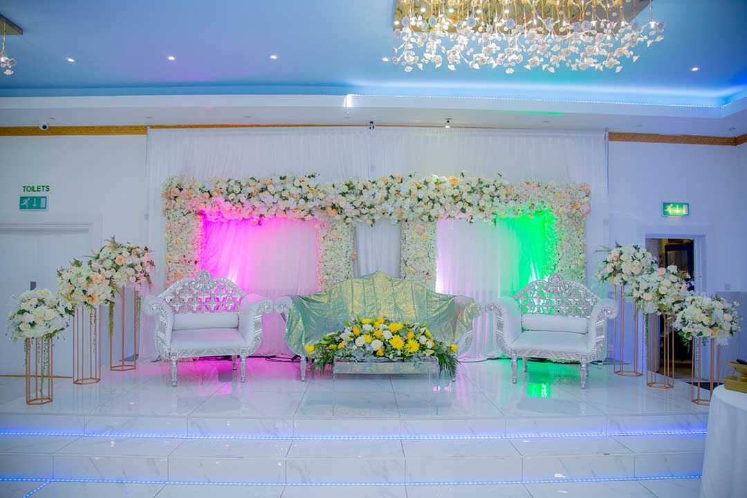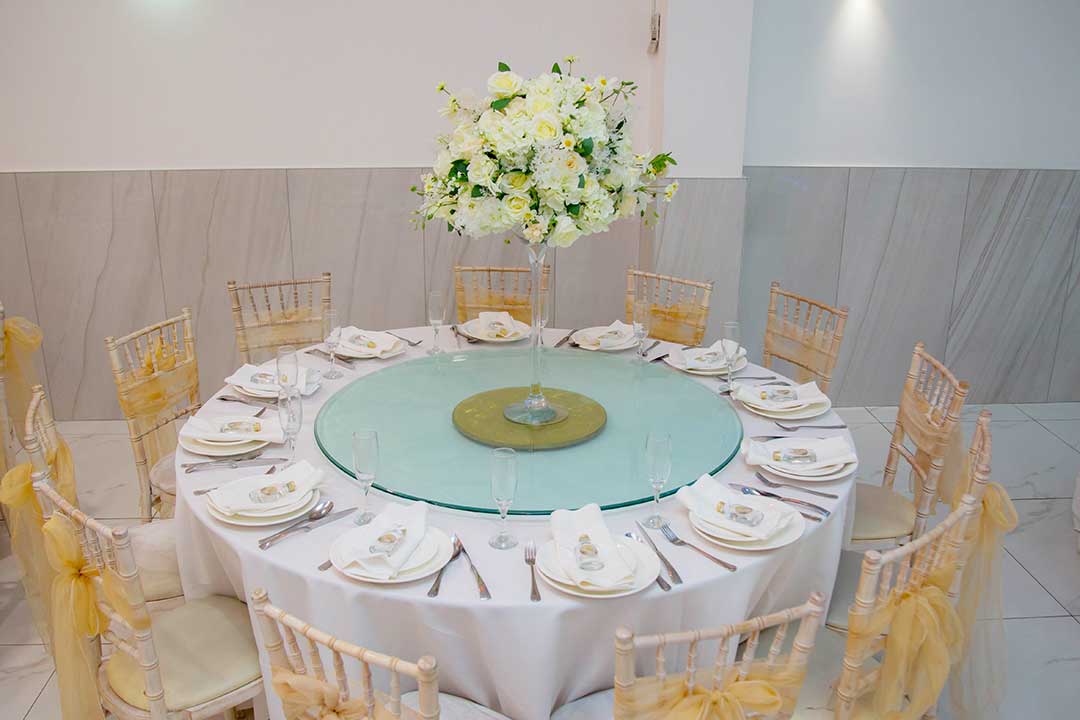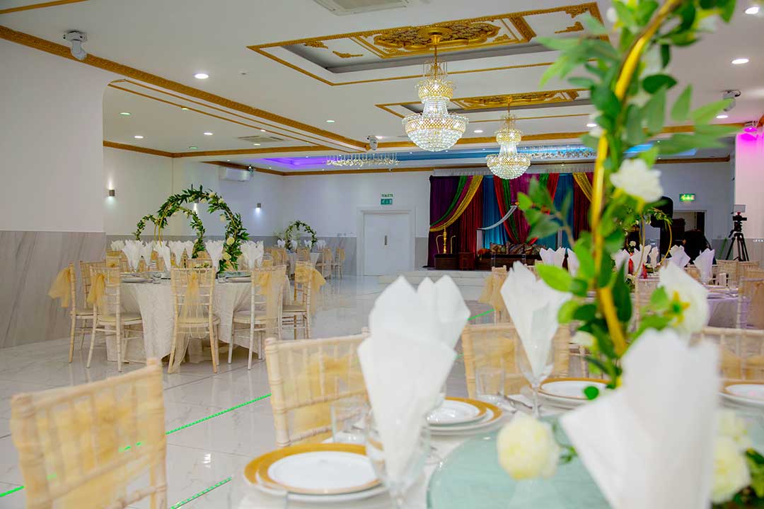 Find below a selection of photos illustrating the banqueting services supplied at Diamond Lounge, including our stages, table settings, centrepieces, flowers, food and wedding cakes. You can follow us on Instagram to see more photos from our banqueting suites.